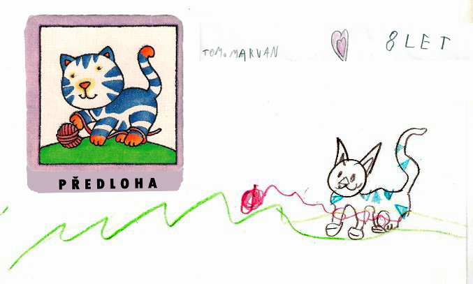 Níže, na této stránce se nachází ukázka obrázků, které namalovaly děti, s maskou přes oči, po aktivaci Intuitivního vidění.